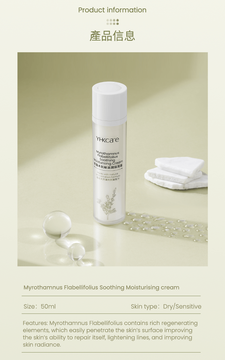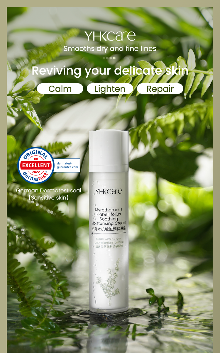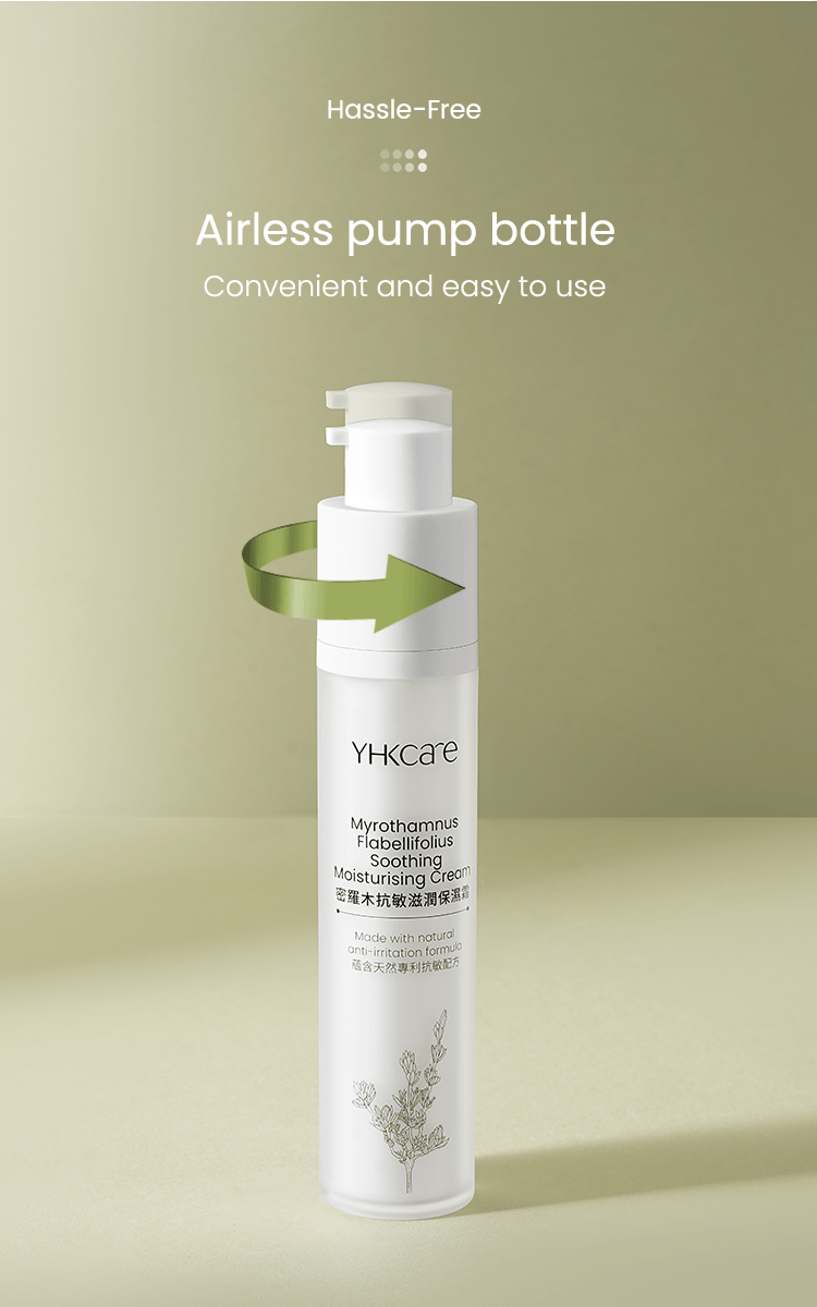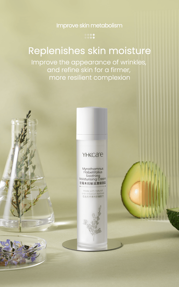Our Myrothamnus Flabellifolius Soothing Moisturising Cream is rich in shea butterˆ, avocado oilˆ, borage seed oilˆ, and precious myrothamnus flabellifolius plant stem cells. Pure nutrients from the Myrothamnus Flabellifolius leaf are extracted using callus culture extract technology. They can effectively regenerate the skin’s vital energy, anti-oxidation capacity, and lighten wrinkles. Shea butter can effectively moisturise and nourish the skin (clinically tested — skin moisture content increased by 48.55%*); avocado oil combined with borage seed oil soothes and calms sensitive skin and strengthens the skin's own protective barrier. In addition, the moisturising cream also deliberately added a patented Korean natural anti-irritant plant extract formula. Experiments show that the formula has a soothing effect on inflamed skin. Our ingredients use natural emulsifiers and no preservatives, leaving no greasy feeling. Skin is left feeling rejuvenated, protected, looking younger and firmer.